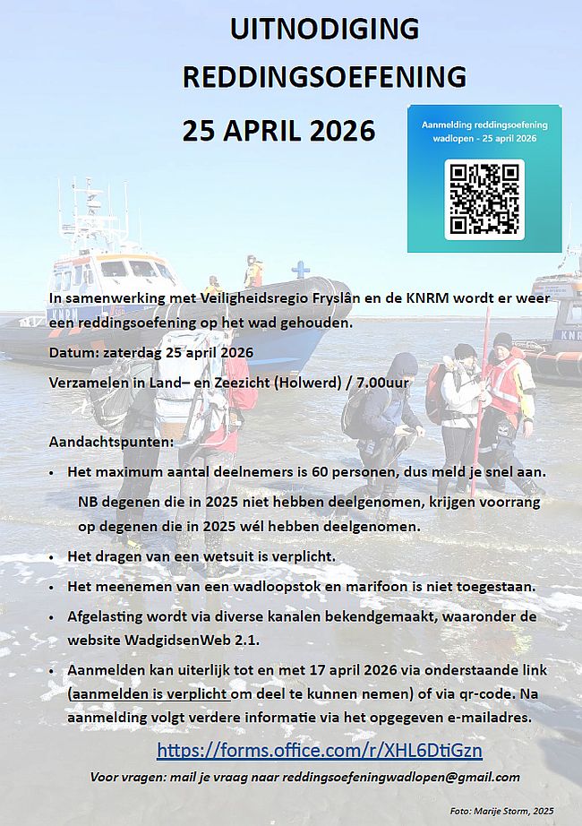 Reddingsoefening wadlopers op 25 april 2026 op Amelander Wad