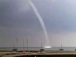 NES - Boven het Waddengebied zijn zondagmiddag 4 augustus jl. vier waterhozen gezien. Eén ervan passeerde de veerboot Sier van Ameland op een afstand van nauwelijks 100 meter. De eerste meldingen kwamen 's middags rond half drie vanuit de jachthaven in Nes binnen bij de kustwacht. Daar werden er toen twee gezien. Even na drie uur meldde een schipper een waterhoos op het Wierumer Wad, tussen Wierum en de Engelsmanplaat. Deze was vijf minuten later weer opgelost. De waterhozen hebben geen schade aangericht. Wadlooptochten naar Ameland en andere bestemmingen werden deze dag 's morgens gelopen (laagwater Lauwersoog 12.46 uur).