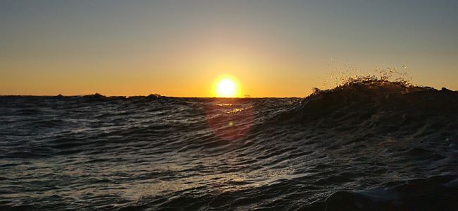 18:30 uur. Noordzeegolven bij de ondergaande zon