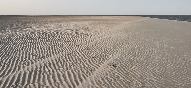 De wind komt uit het oosten. Het zand op het Rif stuift over de plaat. Ik had verwacht mooi in de luwte van Schiermonnikoog te kunnen lopen, maar het water golft lekker. Ik geef mezelf 2 uur om vanaf het Rif via de buitendelta naar 'Vin' te lopen. Als het tegen zit, keer ik na een uur weer om, het zogenaamde point of no return. Het nieuwe bultje ten noorden van het huidige Bultje hebben Ben en ik Vin genoemd. Dit vanwege zijn driehoekige vorm en het heeft daarmee net zo een mooie korte naam als het Rif.