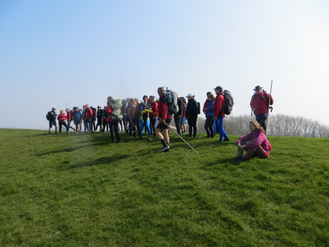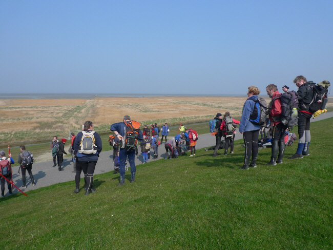 De wadlopers van het Pieterburen Wad op de zeedijk bij rijsdam 352, Linthorst Homanpolder.