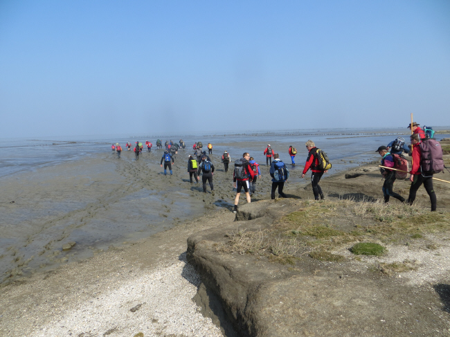 tussen de wadlopers en de KNRM. Het grote aantal deelnemende wadlopers is bij