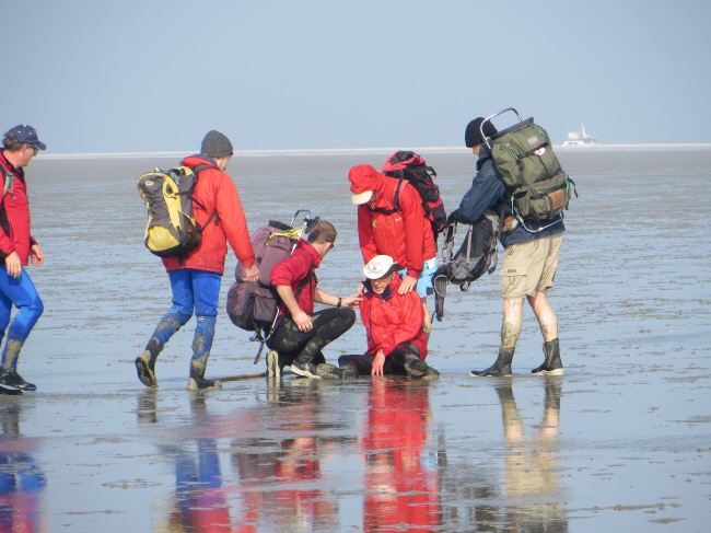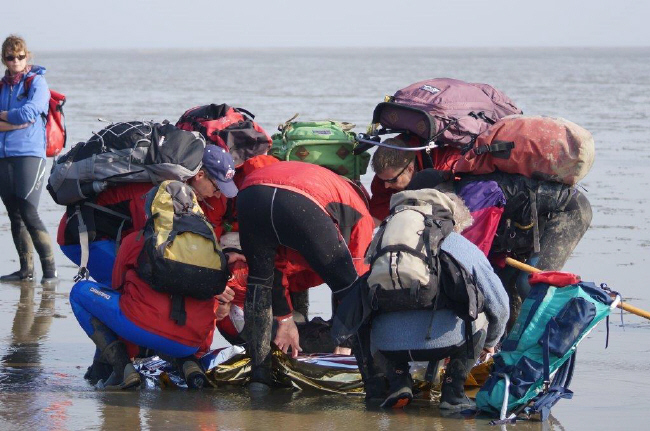 Door tijdverlies kwamen beide groepen in de problemen vanwege de snel opkomende vloed. Er werd hulp ingeroepen.