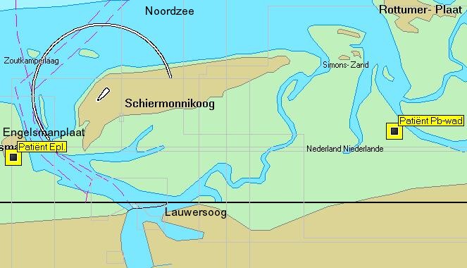 Positie van de twee in nood verkerende groepen wadlopers, resp. bij Engelsmanplaat en