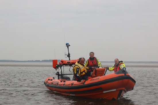 LAUWERSOOG - Op zaterdag 2 april jl. is er in de Waddenzee tussen Lauwersoog en Schiermonnikoog een reddingsoefening gehouden voor wadlopers. Hier aan deden 61 personen mee. De oefening had een beperkte opzet, alleen de KNRM deed mee met de snelle rubberboot met vaste bodem Edzard Jacob van Schiermonnikoog.