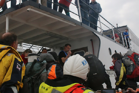Door het ms. Silverwind werd de groep wadlopers vanuit Lauwersoog afgezet op de zandbank