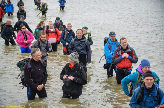 Bij de grote groep met 55 wadlopers brak een deelnemer een enkel.