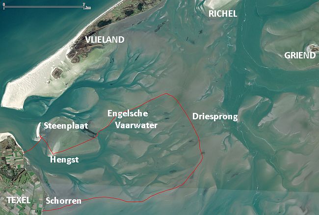 "Op maandag 16 april 2019 heb ik de 26 km lange tocht van de Steenplaat via de Hengst naar de oostpunt van de Richel gelopen in 6 uur. Ik heb me laten afzetten vanaf Texel op de Steenplaat en ons laten ophalen op de Richel. Ja ons, het laatste stuk van mijn tocht heb ik samen met vier andere wadlopers gelopen die vanaf Vlieland waren vertrokken. En ik was ook niet de enige die vandaag een tocht vanaf de Steenplaat heeft gelopen. In totaal zijn er dus drie verschillende tochten op het wad ten zuiden van Vlieland gelopen.