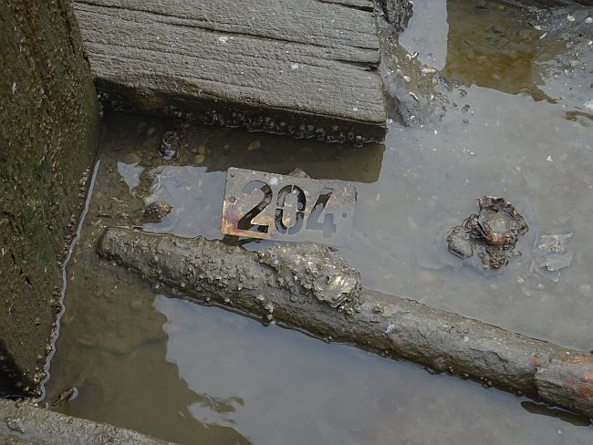 Afb. 10. Op 5 dec. 2019 werd door ons het verloren gewaande grenspaalplaatje '204' teruggevonden aan de voet van de grenspaal.