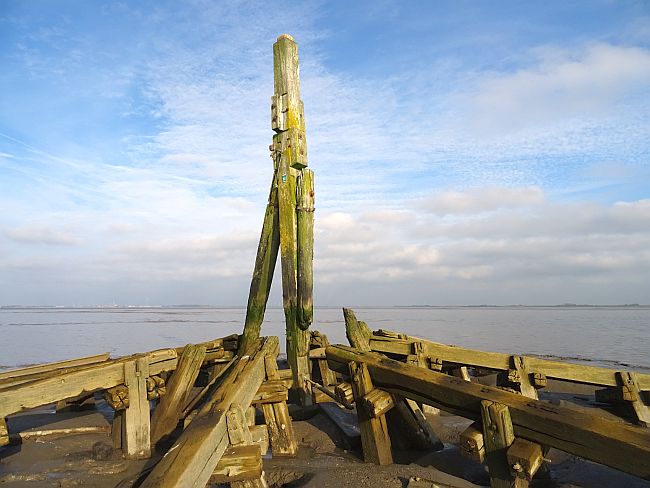 vanaf de zeedijk ter plaatse, door matig zwaar slik.