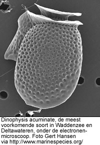In augustus 2014 werd voor de schelpdiervisserij in de Westelijke Waddenzee een soort 'code oranje' afgekondigd door de Nederlandse Voedsel- en Warenautoriteit. Er waren verhoogde concentraties van de plaagalg Dinophysis aangetroffen in mosselen en oesters. De verplaatsing van schelpdieren uit het gebied werd even stilgelegd. De wadgidsen op Texel, geïnformeerd door tweets van de Goede Vissers, adviseerden hun groepen vanaf dat moment om maar even geen zelfgeraapte schelpdieren te eten. Inmiddels is de 'r' al lang en breed in de maand en zijn alle waarschuwingen ingetrokken. Maar wat is Dinophysis?