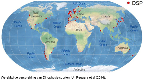 In januari van dit jaar verscheen van de hand van de Spaanse marien toxiocloge Beatriz Reguera en haar co-auteurs een uitgebreid overzichtsartikel over de schelpdiervergiftiging door Dinophysis-soorten over de hele wereld. Daaruit blijkt dat in de jaren '80 en '90 soms duizenden mensen het slachtoffer werden van een Dinophysis-bloei. Ook in Nederland zijn in die jaren enkele ernstige incidenten geweest. Nu en dan moest het verzaaien, verwateren en oogsten van mosselen en andere schelpdieren worden stilgelegd om te voorkomen dat giftige schelpdieren bij de consument terecht kwamen. In extreme gevallen werden partijen uit de handel teruggehaald nadat er flink wat mensen ziek waren geworden. Dit met alle economische gevolgen van dien.