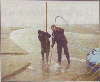 Prikken plaatsen in het Oostschild bij Rottumeroog