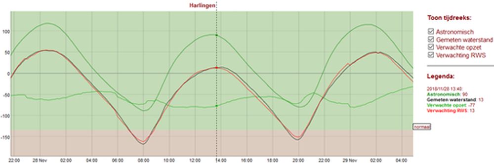 Koehool - Griend v.v. in één tij, 28 november 2018 11:30 - 21:00 uur. Peter Laagland Het getij te Harlingen tijdens de tocht. Bijlage bij W@dgidsenWeb 2.1