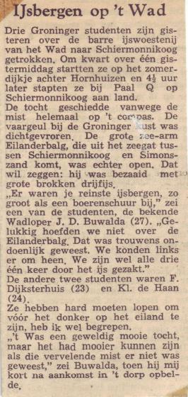 1. Leeuwarder Courant 12-02-1963 2. Nieuwsblad van het Noorden 12-02-1963 3. Het Vrije Volk 12-02-1963 4. Nieuwsblad van het Noorden 14-02-1963 Bijlage bij W@dgidsenWeb 2.1