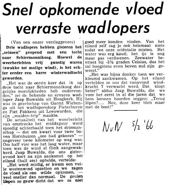 1. Leeuwarder Courant 05-02-1966 2. Nieuwsblad van het Noorden 05-02-1966 Bijlage bij W@dgidsenWeb 2.1