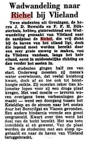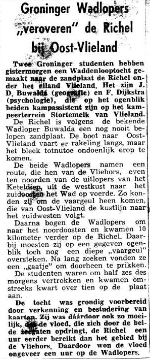 met daarop de door Jaap Buwalda ingetekende wadlooptocht Vlieland-Richel 24 juli 1962.