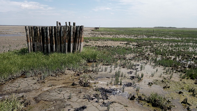 8. Ca. 70 jaar oude palen van de voormalige landaanwinningswerken.