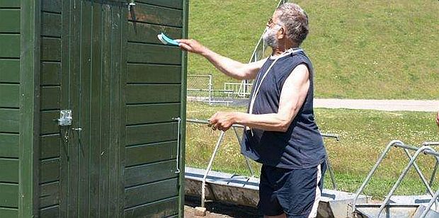 Willem Wad wijdt het nieuwe materiaalhok van Dijkstra Wadlooptochten in de Linthorst Homanpolder nabij Westernieland in