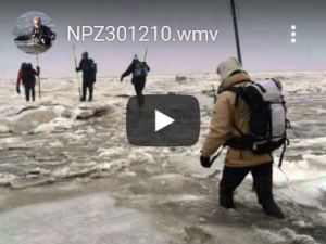 NOORDPOLDERZIJL - Donderdag 30 december 2010 was de eerste ijswadlooptocht met toeristen bij Noordpolderzijl Gn. van deze winter. Acht deelnemers waren er op af gekomen en maakten een mooie wandeling over het ijzige wad ter plaatse. Op rubberlaarzen en met een regenpak aan. En twee skistokken om op gladde gedeeltes op de been te blijven.